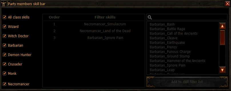 Player Skill Bar plug-in let you choose the hero class for those the skill bar will be available. You can turn on skill bar for one class and turn it off for another class.